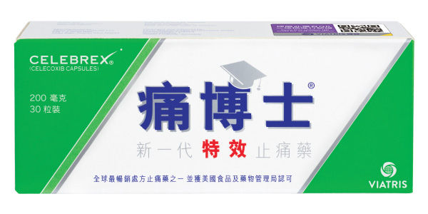 CELEBREX®痛博士® 每天最多服用兩次。1 臨床研究證明,CELEBREX®痛博士® 的安全性並不亞於布洛芬 (ibuprofen) 和萘普生 (naproxen)。與其他非選擇性非類固醇抗炎藥 (NSAID)*相比,服用CELEBREX®痛博士® 後上/下消化道不良事件也較少。,3-5